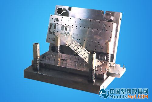 (3)級進模(也稱連續(xù)模)在毛坯的送進方向上,具有兩個或更多的工位,在壓力機的一次行程中,在不同的工位上逐次完成兩道或兩道以上沖壓工序的模具。